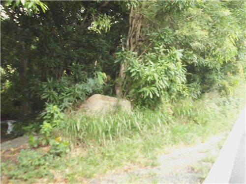 This land for sale in Batalie contains 1.5 acres. It is irregular in shape and is flat to gently sloping. It is covered with unkempt coconuts, mangoes and mahogany and a scattering of large boulders.