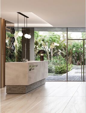 The architecture of the complex is defined by its practicality, eco-conscious design, and clean, cubic forms. Natural textures and a thoughtfully chosen palette of earthy tones allow the building to blend seamlessly into the lush tropical surroundings.