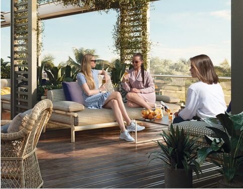 Each apartment features its own private terrace, complete with a neat flower bed of exotic plants, creating a perfect space for relaxation and socializing in the fresh air.