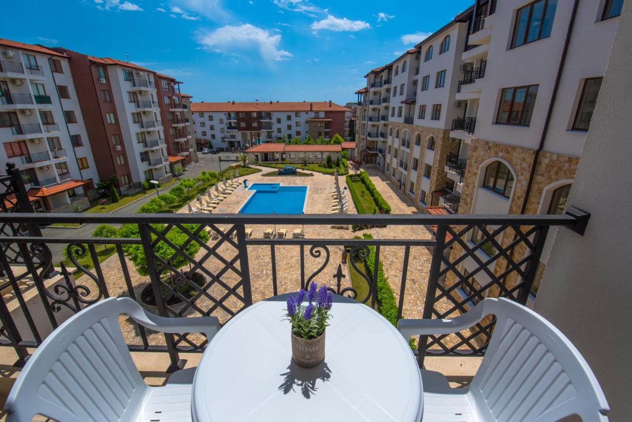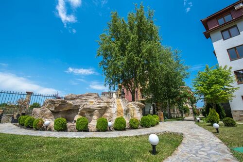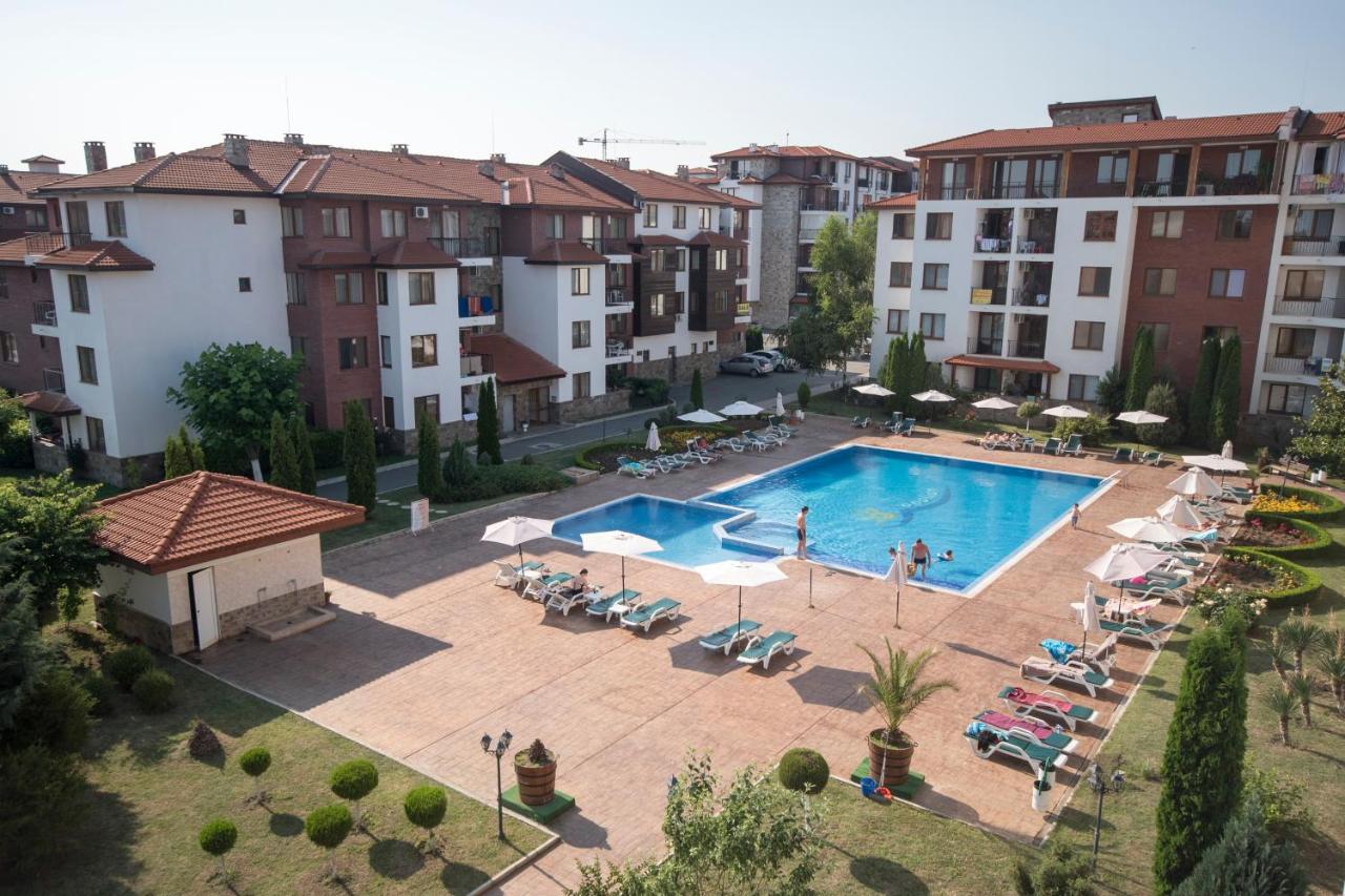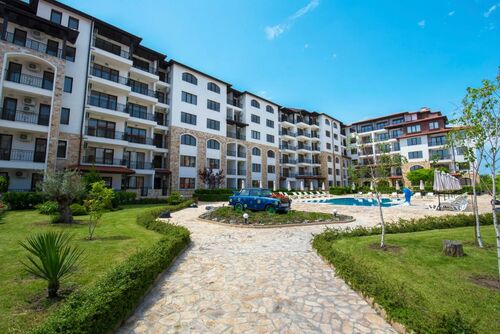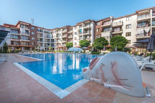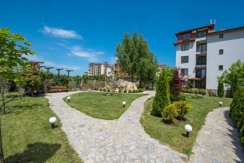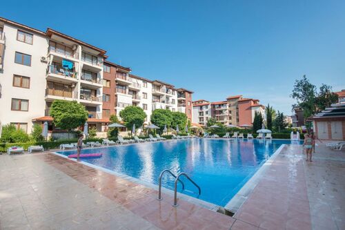 "Apolon" complex, a luxury complex in Ravda, 2 km from Nessebar away. It has a restaurant, bar, children playground, tennis court, football field, swimming pools, parking and security.