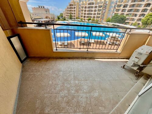 For your attention, we offer for sale a first-line one-bedroom studio for sale on the coast of the Black Sea. The apartment is located on the second floor of the Media Grant Resort complex, Aheloy. The area of the apartment is 49 sq. m with one bedroom and one bathroom and toilet in one. For sale with modern furniture. The terrace is big and have amazing view to see and swimming pool.