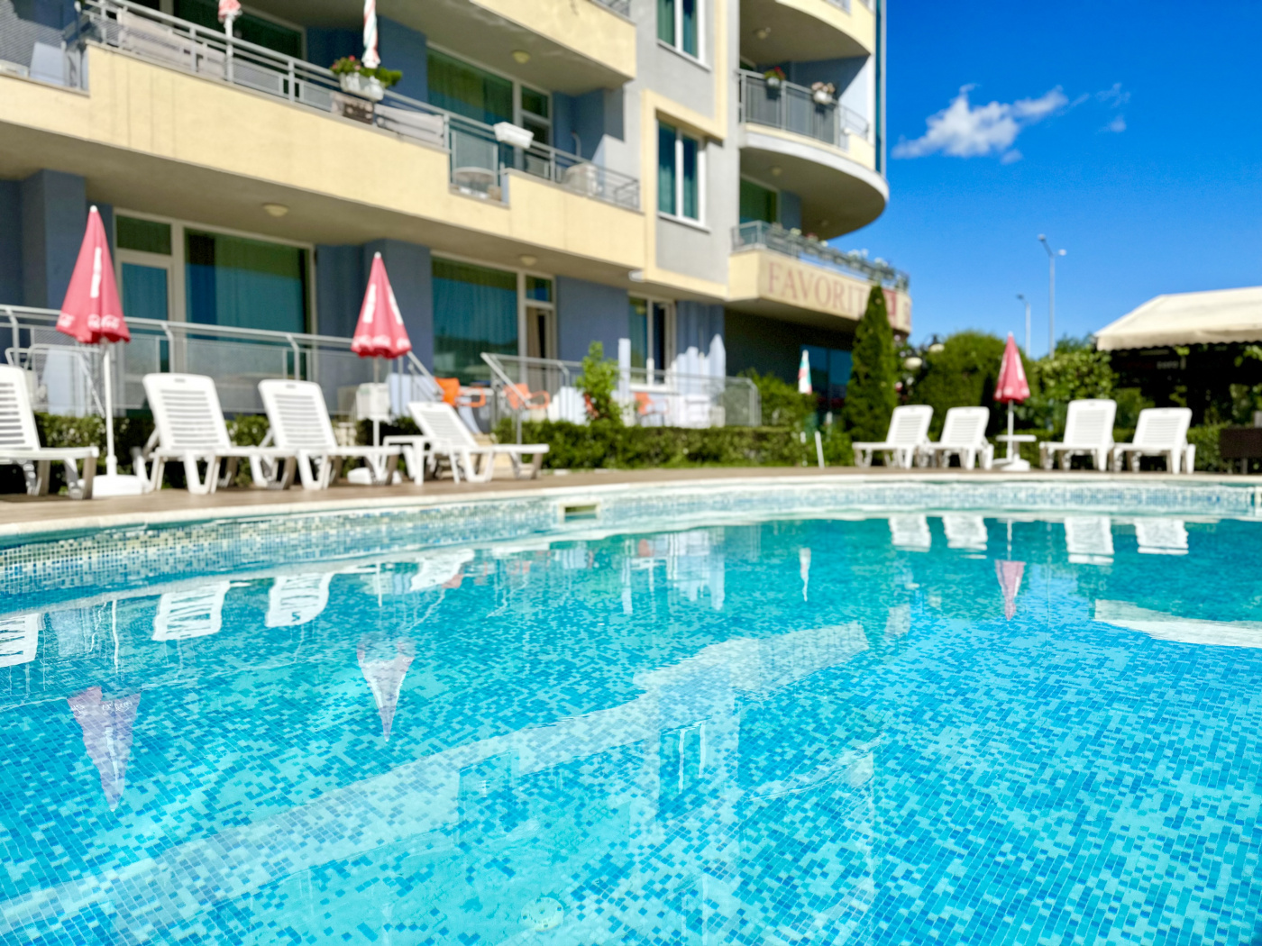 Apart Hotel Favorit is a charming holiday complex, offering comfort, greenery, and easy access to the beach and resort attractions. The complex provides a pleasant and relaxing atmosphere, while being close to the lively entertainment and nightlife of Sunny Beach.