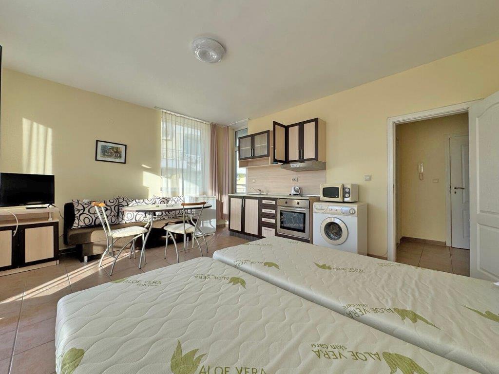 IBG Real Estates is pleased to offer for sale a bright and well-maintained 1-bedroom apartment, located in the popular Apart Hotel Favorit, in one of the most attractive areas of Sunny Beach, close to the beach and the famous Cacao Beach.