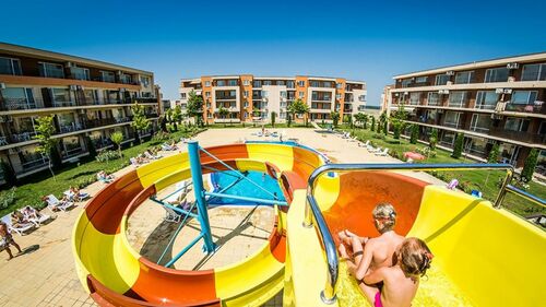 2-bedroom apartment, located on the 2nd floor in the Holiday Fort Club complex in Sunny Beach. This well-maintained, year-round complex is opposite the Action Aqua Park and offers a wide range of amenities, making it ideal for permanent living, holiday use, or rental investment. The beach is only a 10-12 minute walk, and the center of Sunny Beach is about 15 minutes away.