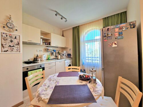 We offer a bright 2-bedroom apartment in the popular Royal Sun complex, located in the central part of Sunny Beach. The apartment has a total area of 94 sq.m and is situated on the 4th floor of a building with an elevator. It consists of an entrance hall, living room with kitchenette, two bedrooms, bathroom, and balcony. The property is offered fully furnished and equipped with appliances, ready to move in or rent.