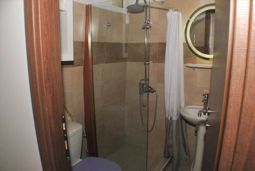 Shower room with shower cubicle, wash basin and WC.