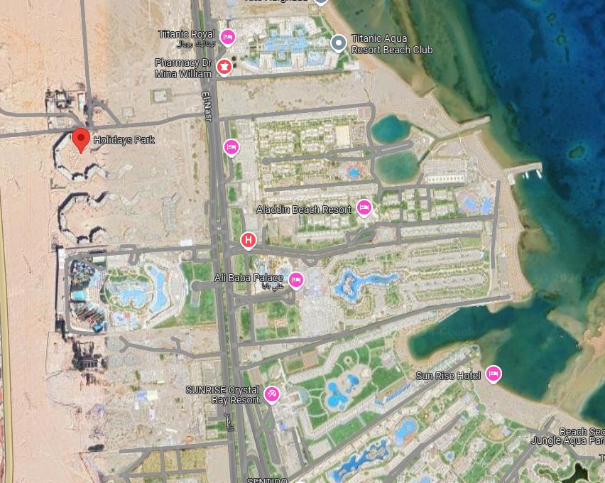 ✅Located in the Mamsha area, opposite the Jasmin Hotel, next to the famous Titanic Resort & Aqua Park. Just 5 minutes from the Senzo Mall shopping center with a Carrefour hypermarket and 15 minutes from Hurghada International Airport.