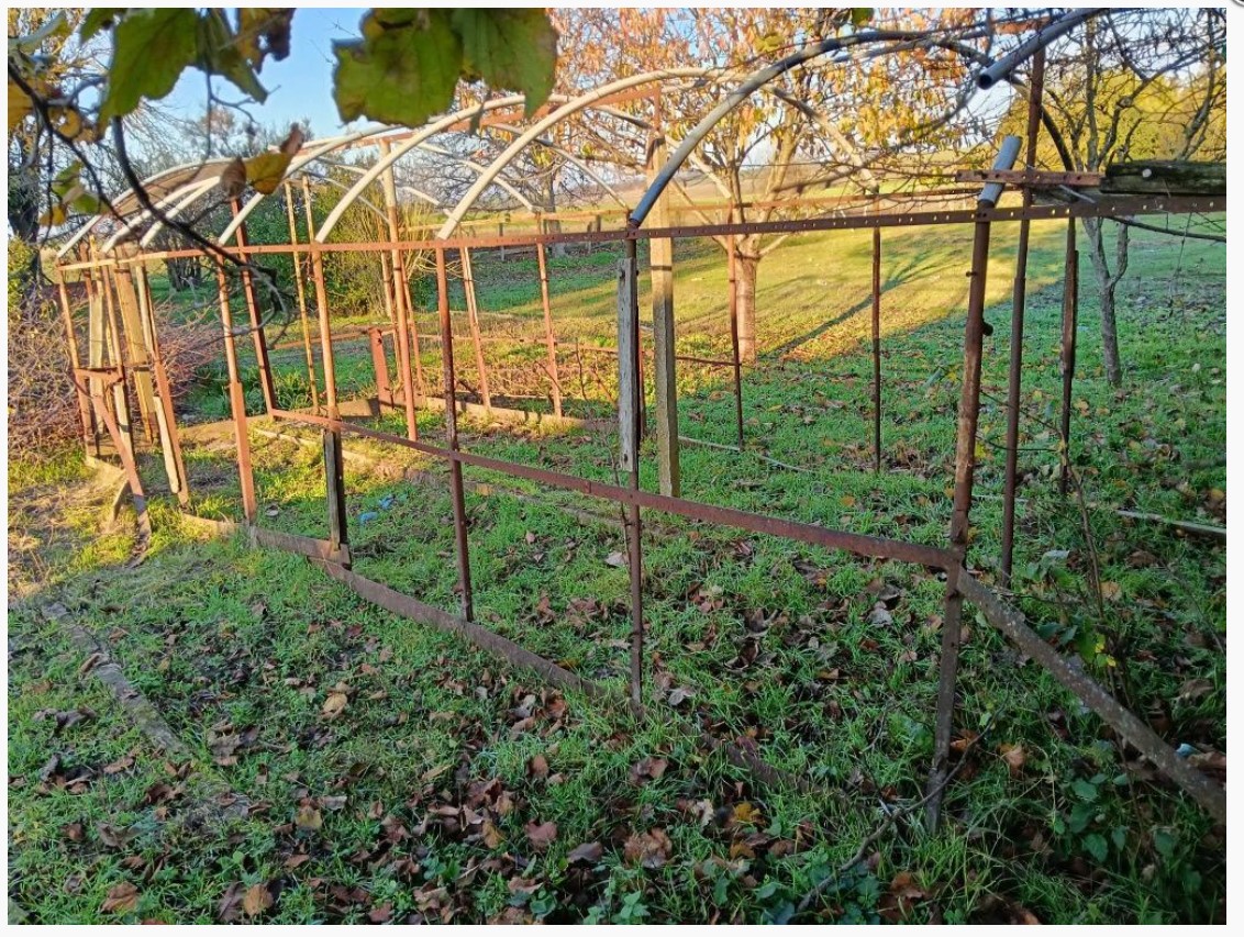 There are TWO houses, an outbuilding, a garage which a Pit / trench.