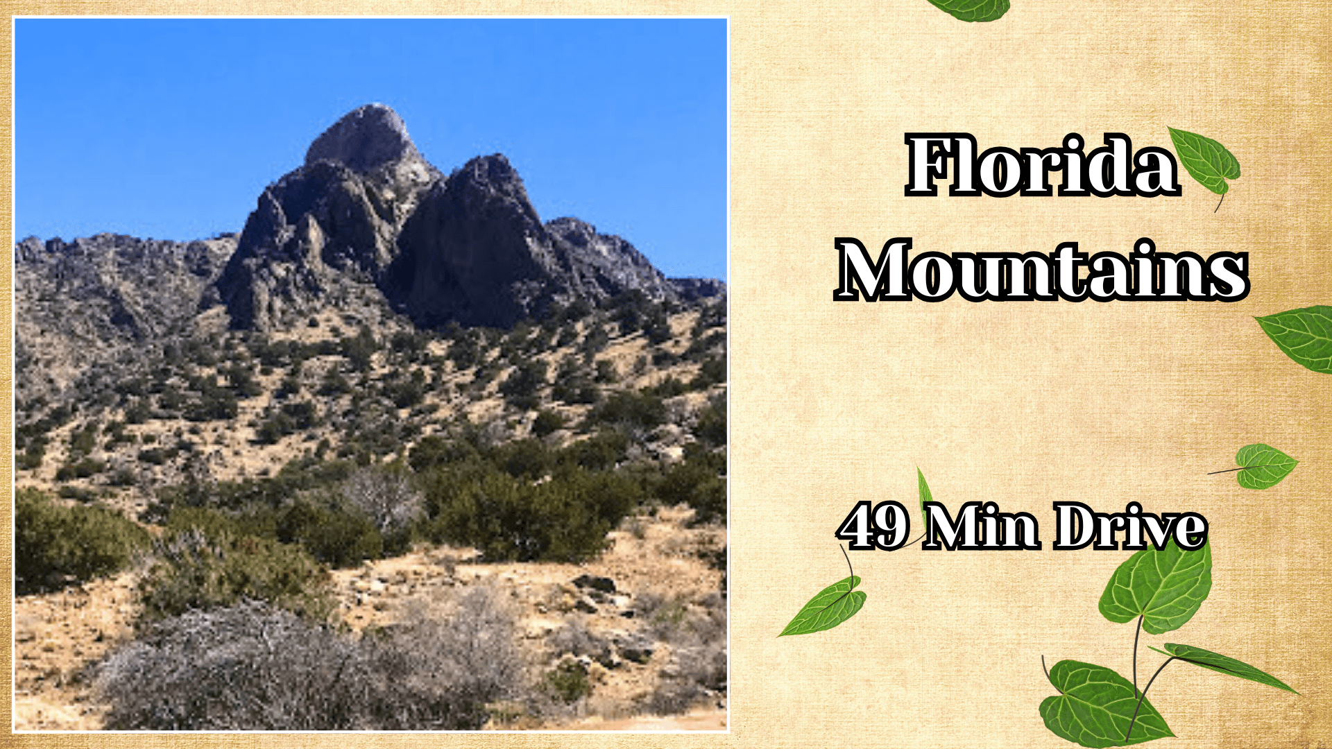 Closest Major Metro: Las Cruces, New Mexico — 60.7 Miles / 1 hr 15 min