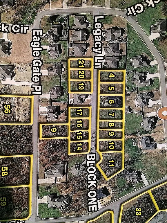 Located in the gated community of Eagle Rock Subdivision, Lot 11 (.24 acres) is at the end of the cul-de-sac on Legacy Lane. The community includes a park, swimming pool, pavilion, playground, creek, and community events such as the huge, annual Independence Day fireworks show. With a quarter of an acre, you'll have plenty of room to build your home and enjoy a large yard.