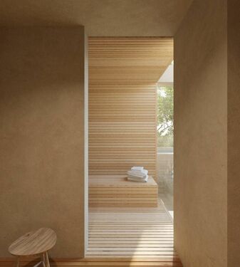 The wide open and airy spaces, decorated with natural materials and modern finishes and attention to detail.