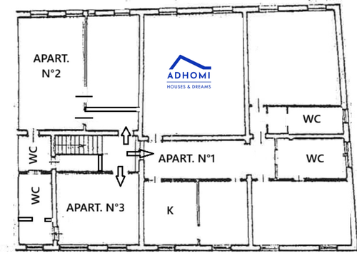 Si accede al primo piano al complesso dei tre appartamenti da scala privata che conduce alle tre unità composte da: