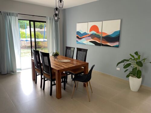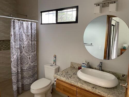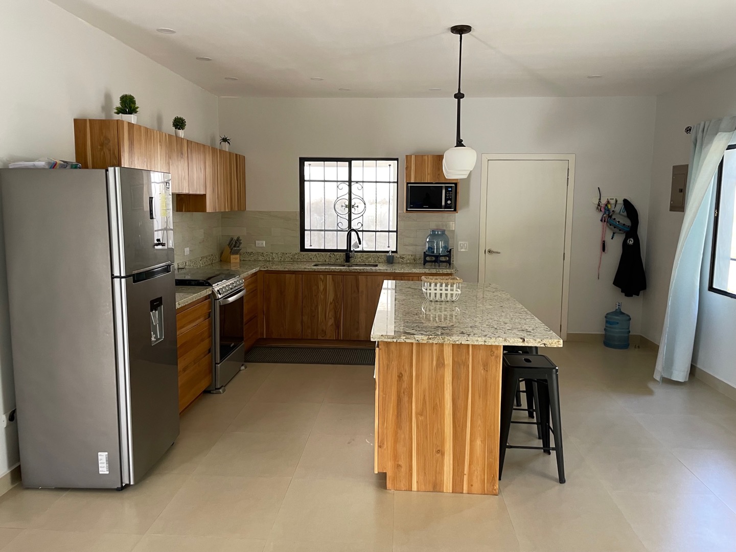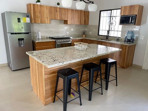 Located a few minutes south of San Juan del Sur this 3-bedroom home with gorgeous custom wood doors and vanities is ready to move into. The home sits on 2 lots which measure 22 meters by 22.5 meters. The house has an open floor plan of for the living area and kitchen which gets great sunlight and is huge.
