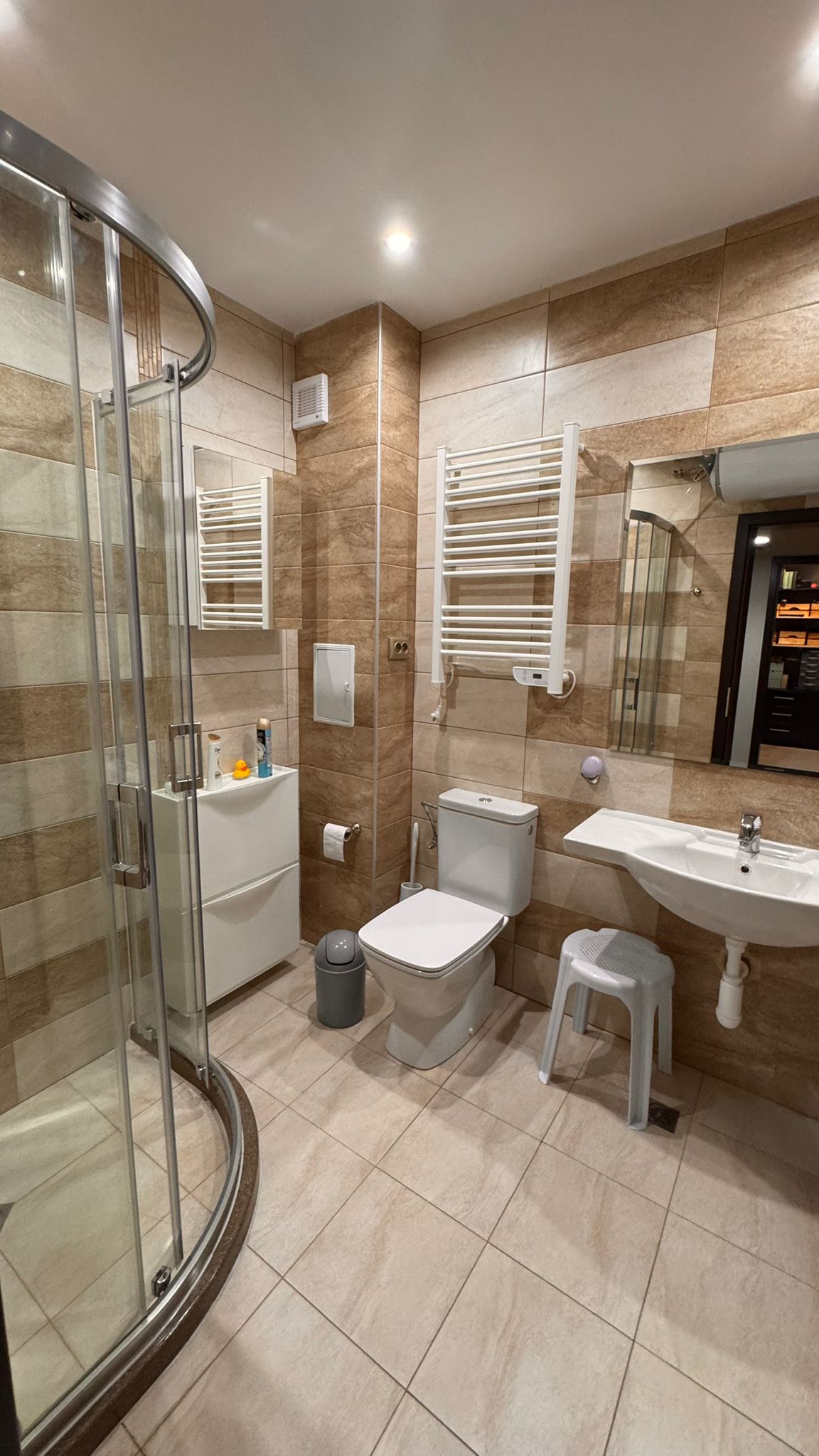 We are pleased to offer for sale a spacious multi-room apartment with a courtyard view in the Mirni Complex, part of the prestigious Millennium Complex in Sveti Vlas. Located on the ground floor, the apartment consists of two connected units with a total area of 151 sq.m., featuring an entrance hall, spacious living room, office, large dining area with a separate kitchenette, two bedrooms, two bathrooms with shower cabins, closet, and two terraces overlooking the landscaped courtyard.