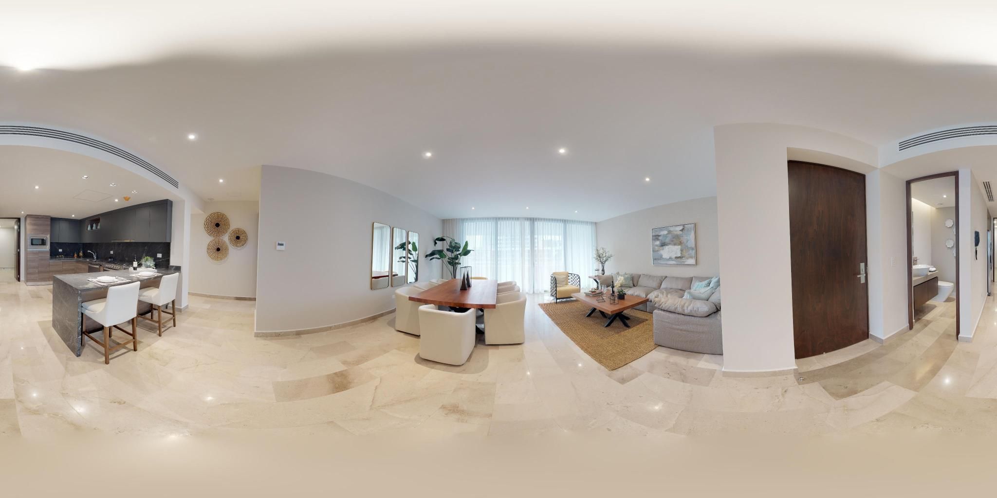 3 bedroom condo with living room, terrace, kitchen, dining room, tv room, half bath, main bedroom with walk-in closet and full bath, bedroom 2 with walk-in closet and full bath, bedroom 3 with walk-in closet and full bath, maids room with bathroom, utility room, 2 covered parking spots.
