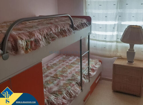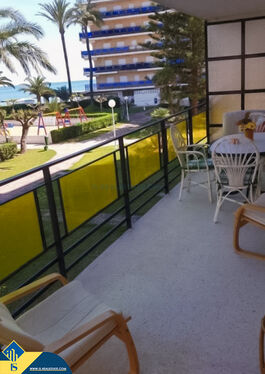 4-room apartment on the first line with sea view, in Alicante province, Denia, Spain, 80 metres from the sea, total surface of 90 m², 104 kilometres from Alicante airport. The property has a shared swimming pool. Near the property there are shops, restaurants, bus stops, children's areas, petrol stations, green areas, cafes, centre