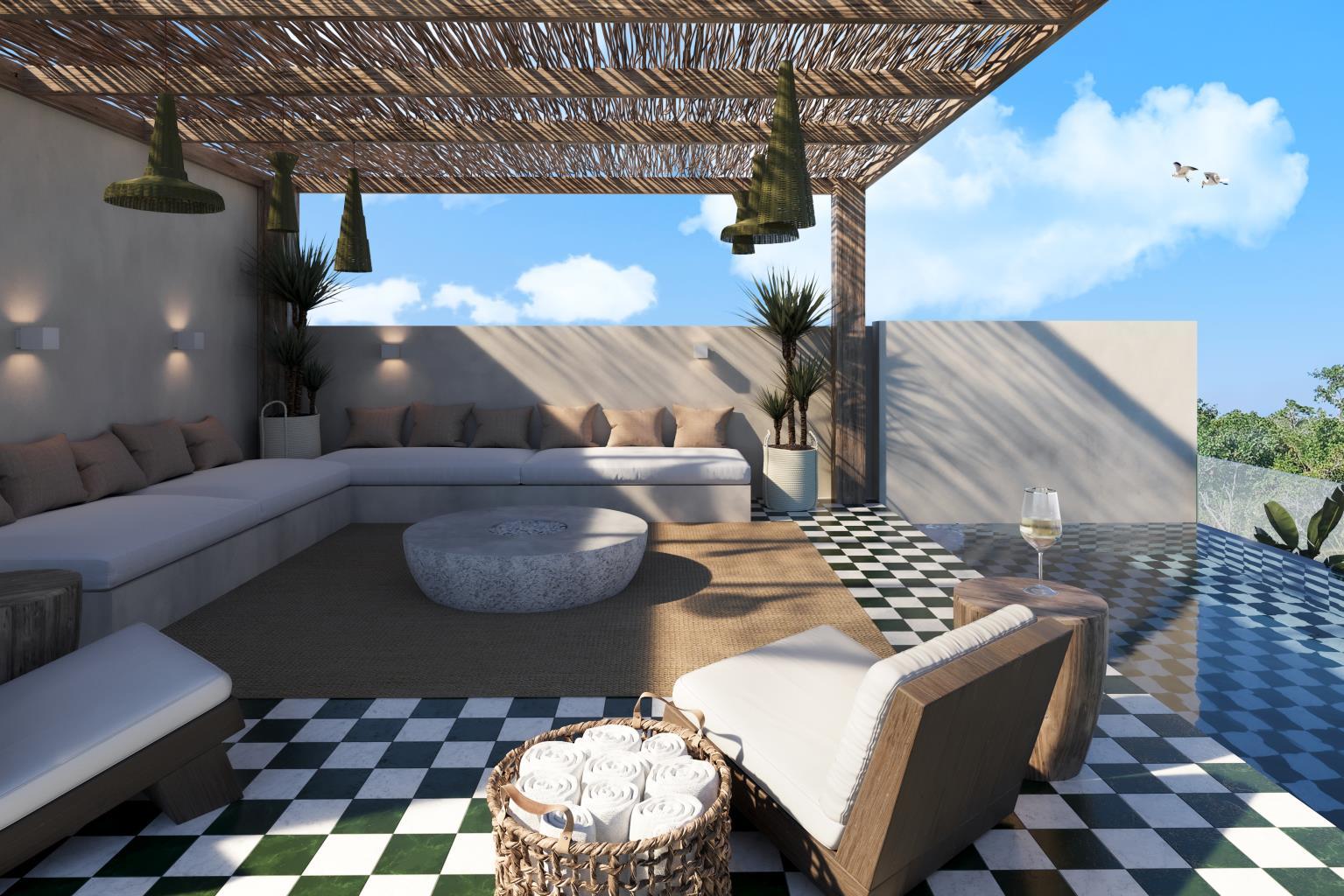 ● Common pool with sundeck and outdoor lounge.