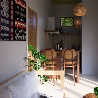 All furniture is sourced from Sumba. The design is a combination of typical Sumba with a modern design. The equipment is functional, comfortable and of high quality.