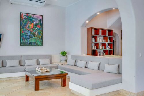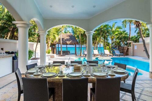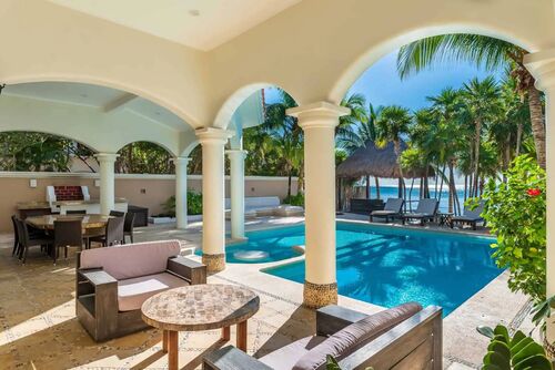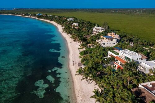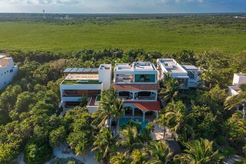 Fully furnished, the property includes 6 bedrooms, each with a private bathroom, a kitchen, living and dining areas, and a breakfast terrace. Three of the bedrooms feature oceanfront balconies, overlooking the stunning Soliman Bay—one of Tulum’s best-kept secrets. This exclusive gated community with 24/7 security was designed as a luxury residential enclave, and boasts one of Tulum’s most breathtaking bays. Its vibrant blue and green hues remain brilliant in any weather and are protected by a natural reef that is home to hundreds of marine species already accustomed to human presence.