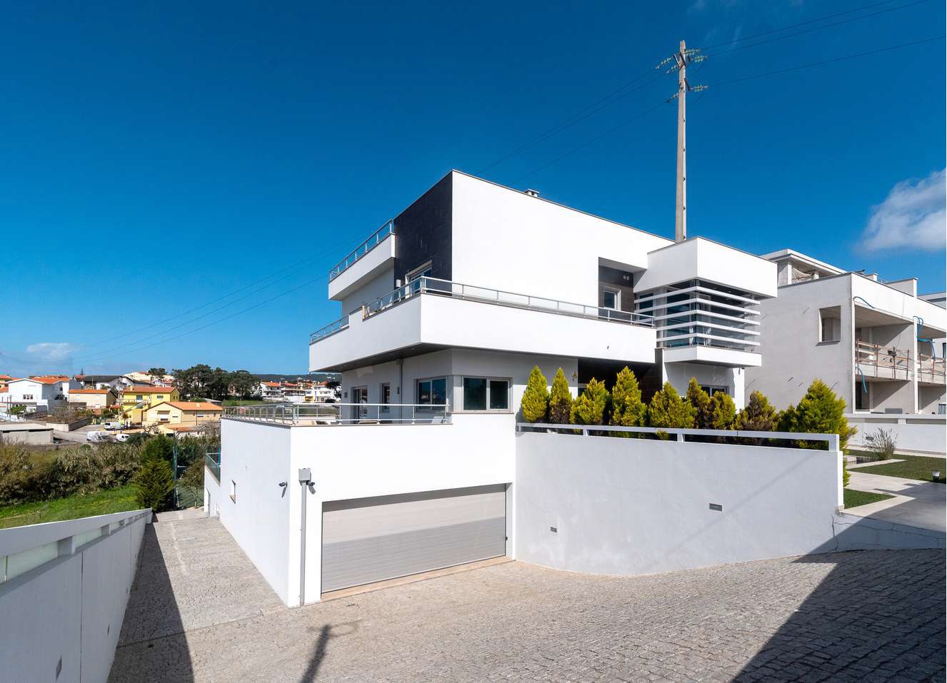 Welcome to your new residence in Figueira da Foz. This stunning 3-storey villa (250 m2 each) offers a unique panoramic view, encompassing the city, the ocean and the mountains. With 6 suites, 8 bathrooms, a spacious terrace, outdoor pool, football