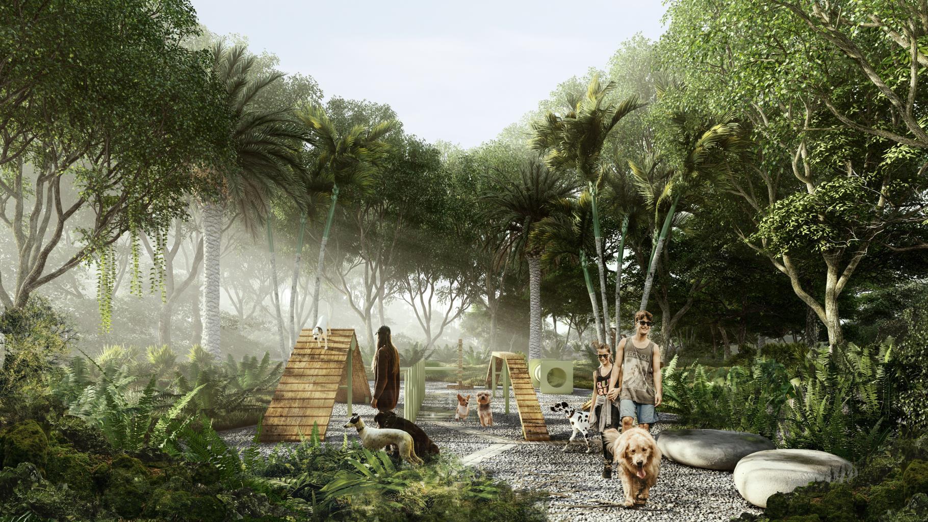 clubhouse, yoga area, jungle gym, pet park and children's play area. It will be completely fenced