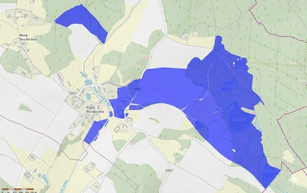 The sale includes a set of forest land with an area of 312,082 m2, 5 interconnected ponds with a total area of 69,474 m2 (Pavlíkovský, Kameničák, Smrkovec, Žlíbek, and Hraničák). There are also meadows and fields. The total area of all the land is an incredible 670,124 m2.