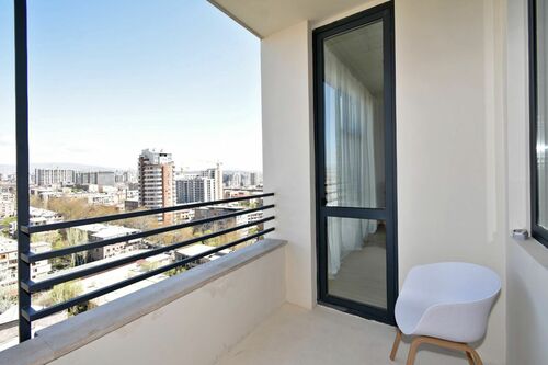 This beautifully designed 77-square-meter loft-style apartment is located on the 13th floor of a newly built 14-story building, offering stunning east-facing views. The apartment features 2 spacious rooms, large vitraj (glass panel) windows that flood the space with natural light, and two balconies—one open balcony perfect for enjoying fresh air and the other designed in a classic French style. The loft-style design adds a unique, contemporary charm to the space, making it ideal for modern living.