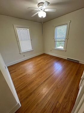 This charming two-bedroom, one-bath home features beautiful hardwood floors and central air. The living room is spacious and bright, while the functional kitchen offers ample cabinet space. Enjoy the serene sunroom with large windows overlooking the yard. Both bedrooms are cozy and inviting, and the updated bathroom is modern and stylish. Ideal for comfortable living, this home is a perfect blend of style and practicality.