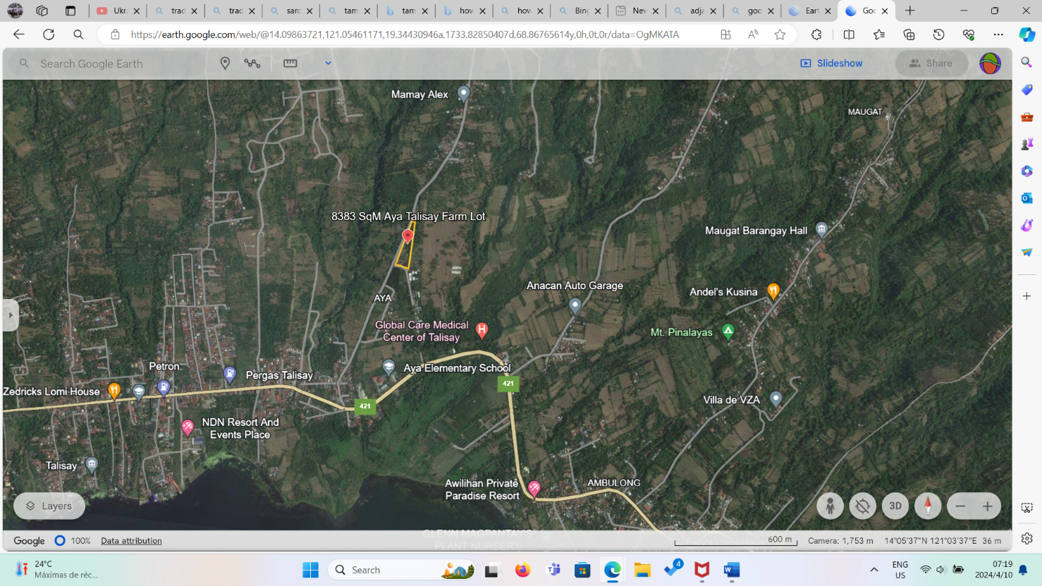 The property is outside the minimum safe distance of 10 km from Taal Volcano. It is 11. 66 km away. Yet, it is located in volcanic soil rich Talisay, the Seedling Bowl of the Philippines.
