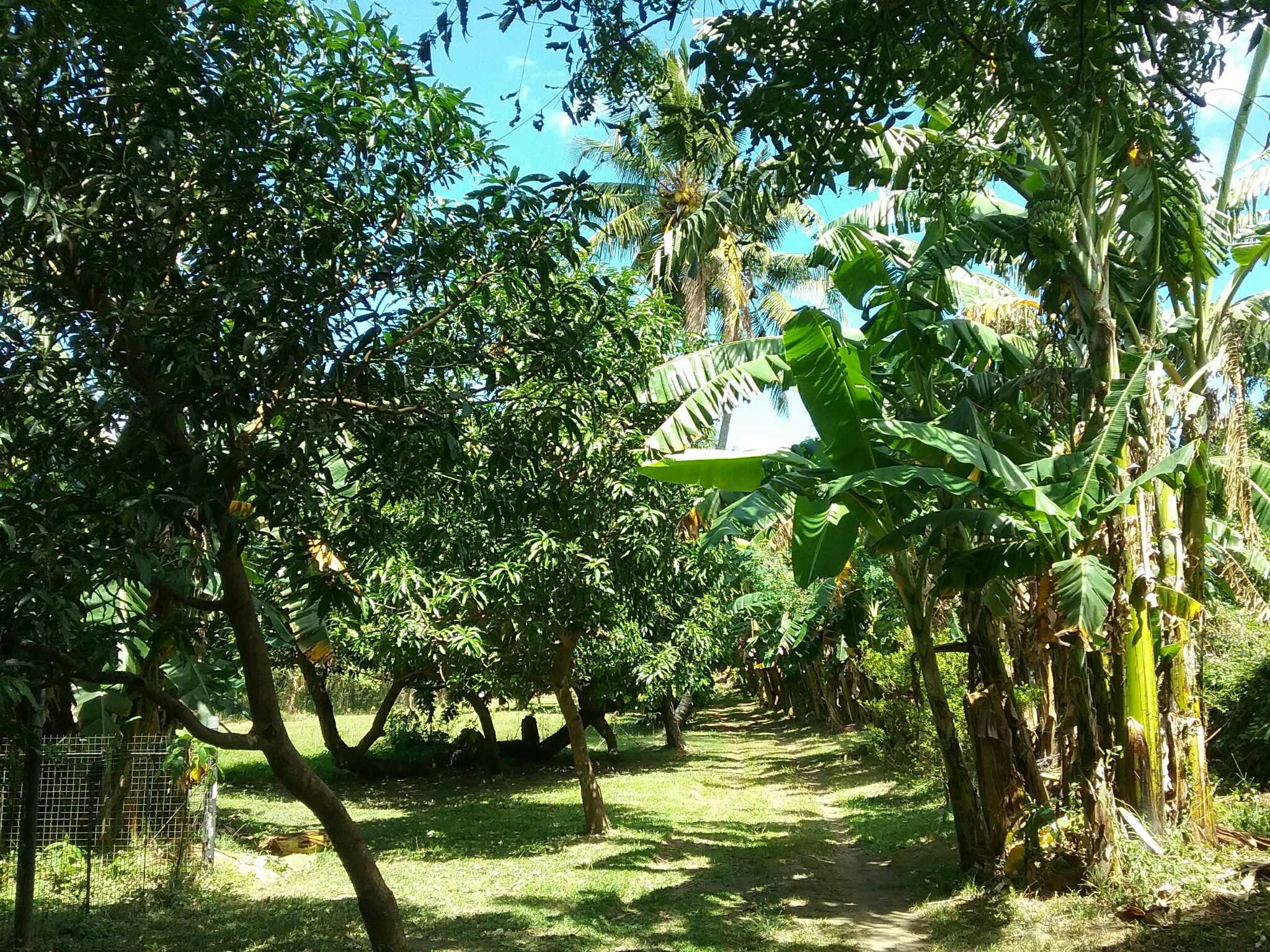 Trees inside the property are: Neem, Bamboo, Coconut, Banana, Mango, Cacao, and Citrus.
