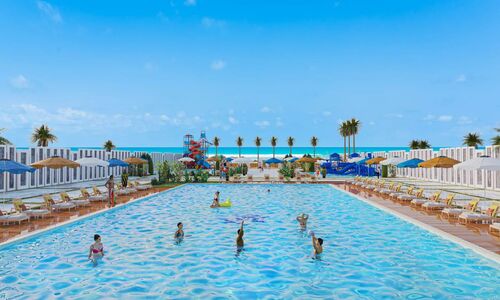1: A sandy private beach 2: swimming pools 3: A heated swimming pool