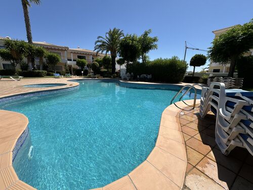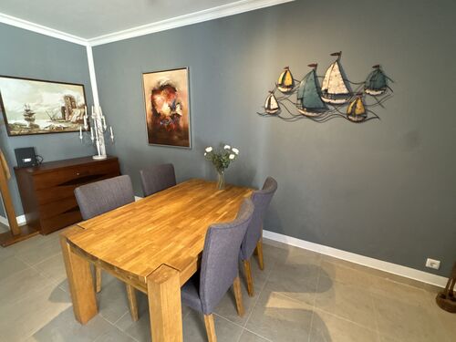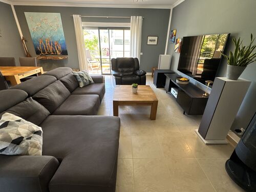 At the heart of the home is a spacious, southwest-facing living and dining area. Flooded with natural light throughout the day, this open-plan space features sliding glass doors leading onto a generous, sun-drenched terrace- perfect for al fresco dining, entertaining guests, or simply relaxing in the Algarve sunshine.
