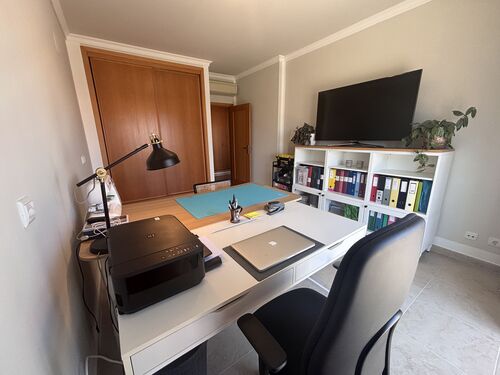 The apartment offers three generously sized bedrooms, one of which is currently used as a home office - providing flexibility for remote work or additional living space. The master suite includes built-in wardrobes and two private balconies, creating a serene and spacious retreat.