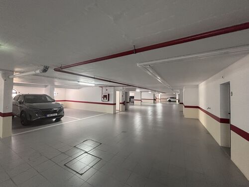 Outside, residents can enjoy the beautifully maintained communal swimming pool surrounded by mature landscaped gardens with palm trees and manicured greenery - an ideal oasis for relaxation. The property also includes two secure underground parking spaces and a private, lockable storage room in the basement.