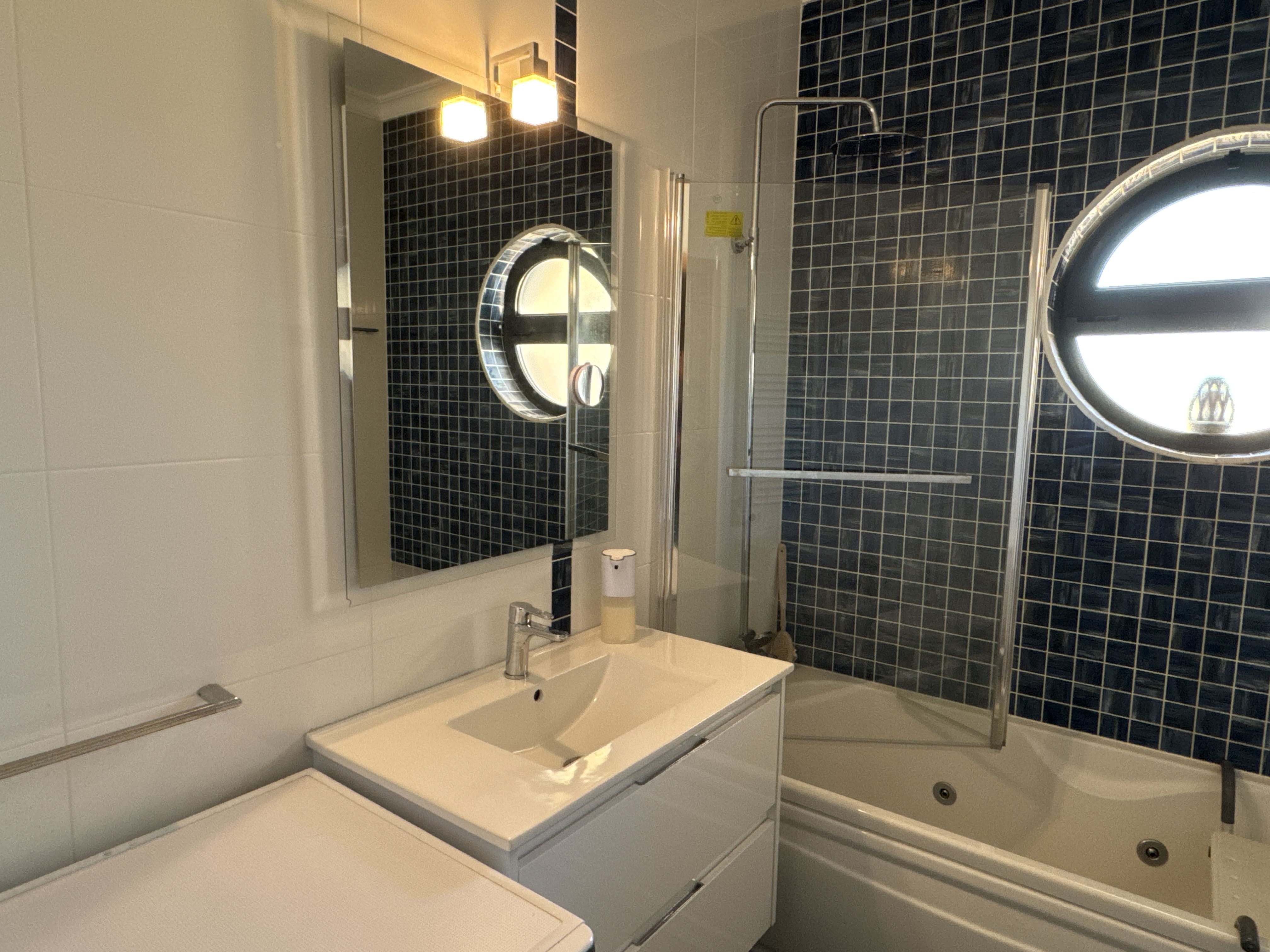 For year-round comfort, the apartment is equipped with air conditioning units in the living room and all bedrooms.