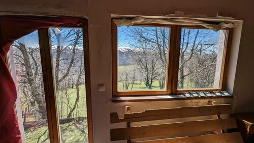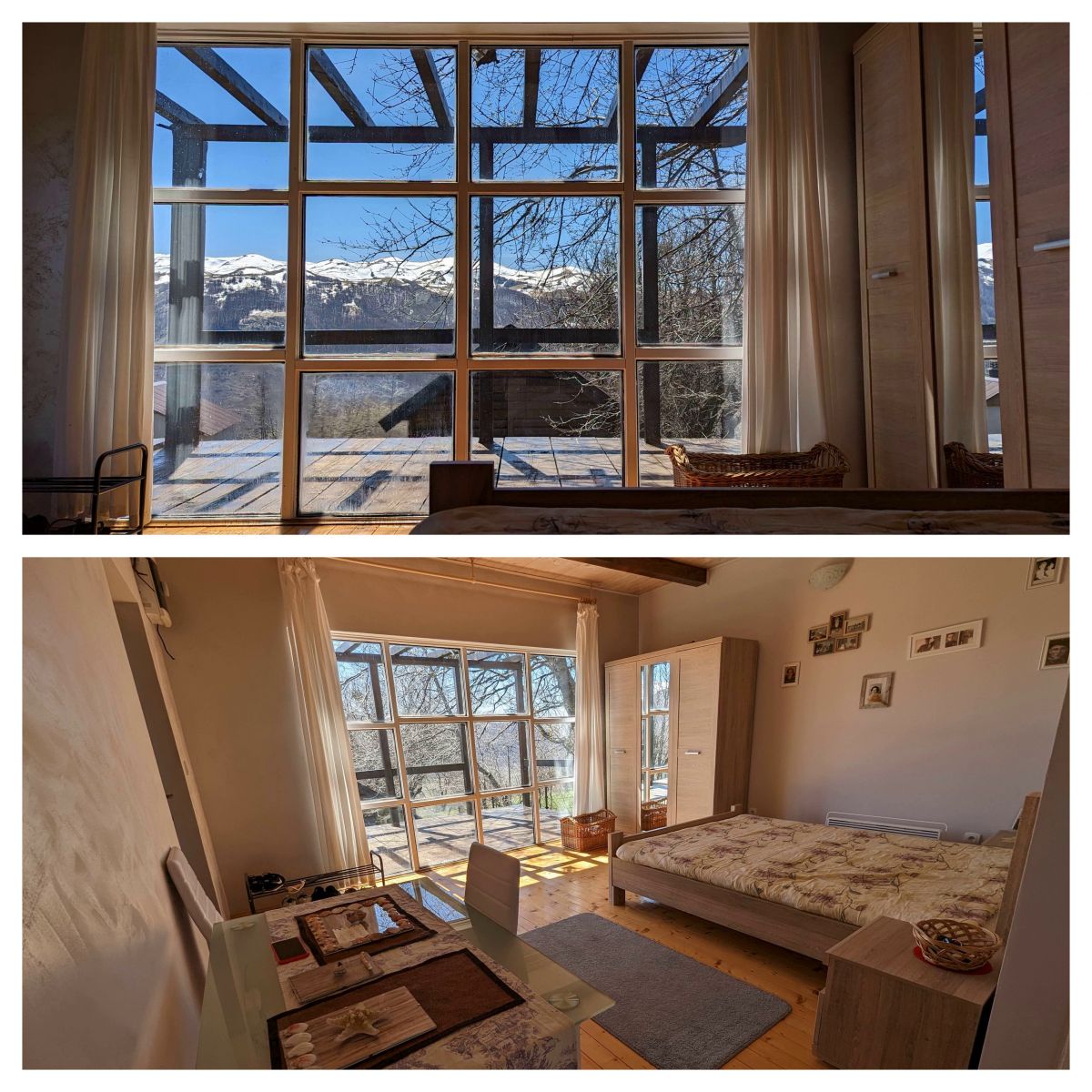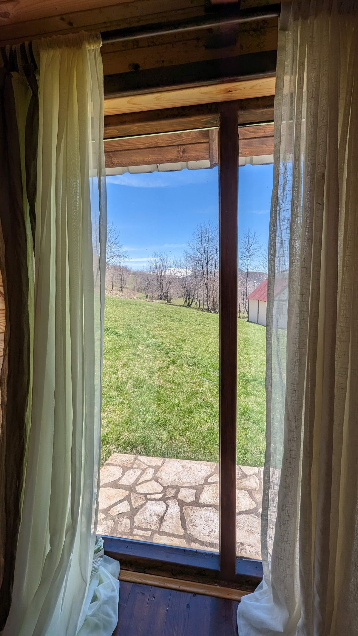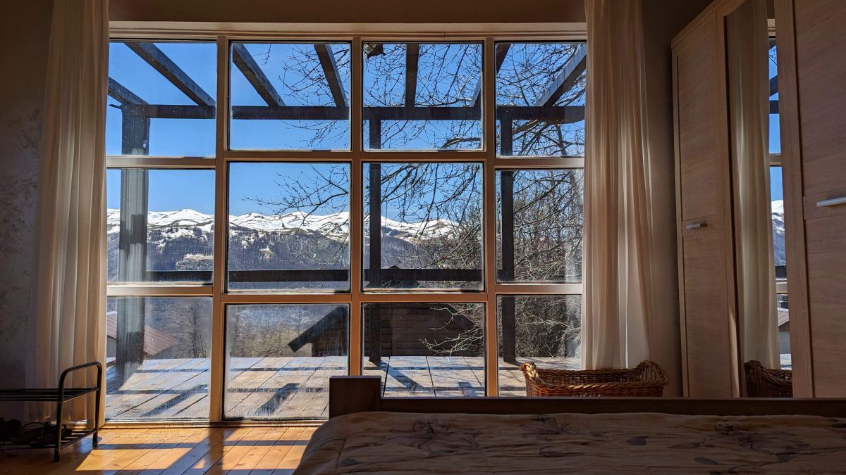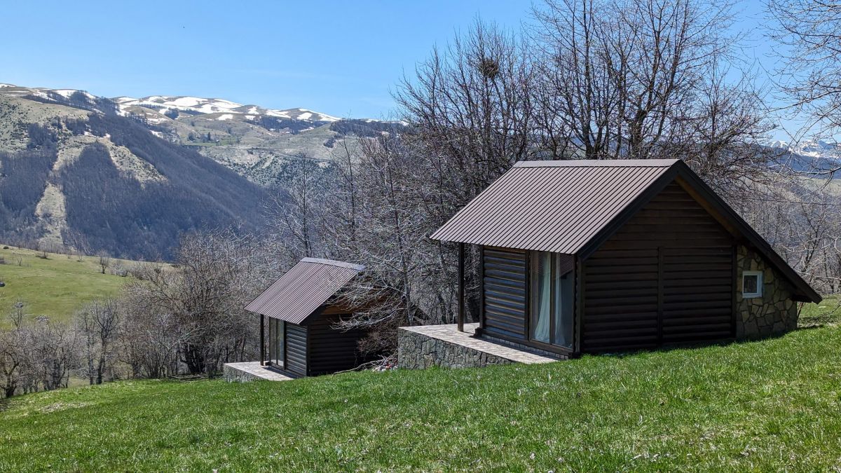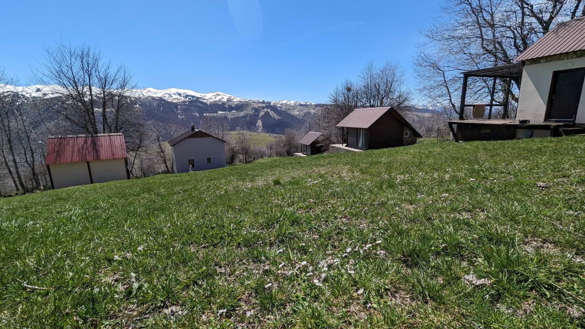 The view from the site and the windows of the houses is fantastic, until the beginning of summer, on the tops of the mountains on the other side of the Moracha river canyon, there is snow, creating an incredible combination of fresh green grass on the background of snow-covered mountains.