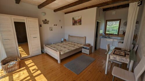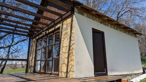 - one-storey house of 46m2 (fully completed, block walls, external insulation, panoramic window, furniture)