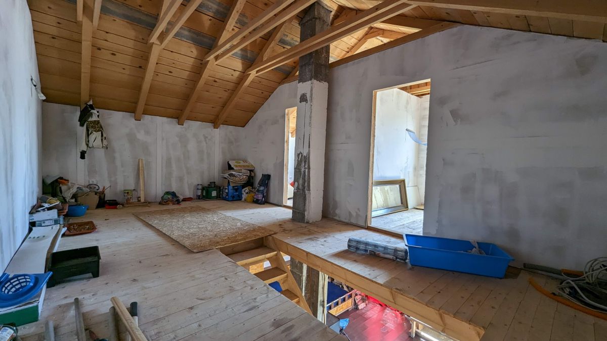 - two-storey house with the area of 100m2 (block walls, exterior insulation, interior finishing is not completed)