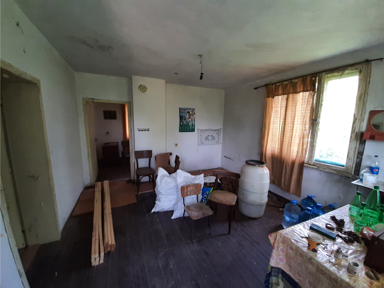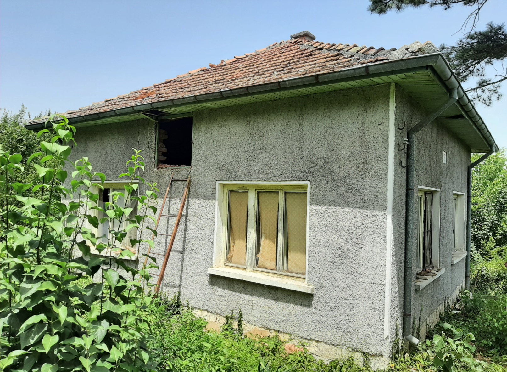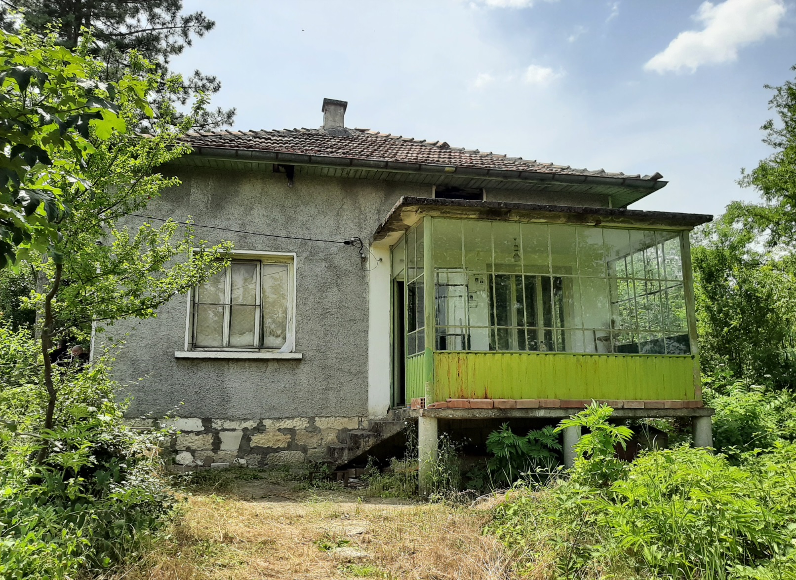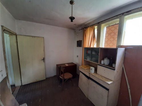 Old country house with spacious plot of land and quiet location situated near the center of a small village 20 km northeast of Vratsa, Bulgaria. The house has one floor with lobby, living room with kitchenette, dining room and bedroom with lounge. There is also a big attic space which can be rearranged, rebuilt and a fully functional second floor can be raised. The property is a bit overgrown as the place had been empty for a couple of years. There is running water and electricity on site and the access to the house is via street covered with concrete. There are two inhabited houses around but one of them is used all year round while the other is visited mostly during the weekends. The rest of the properties around are empty. The village center is less than 5 minutes away by foot from here. There one can find the local mayor`s office, the post office, the main square of the settlement as well as small café-bar and grocery store where you can buy basic food and drinks. There is a bus line going through the village and connecting it to the nearby villages and the regional center and seat of the local council Vratsa. The city is about 20 km away from the property and as the biggest town in the area and center of the region provides many amenities such as general hospital, dental services, schools and kindergartens, hotels, motels, restaurants, coffee shops and bars, museums, library, cinema, theater, parks and sports grounds, etc. Vratsa also has police and fire station, train and bus station with direct links to the national capital city Sofia, a wide variety of shops and stores for everything from construction materials, tools and equipment to furniture, clothes, food and electrical appliances. The area near Vratsa offers easy access to a number of tourist sites such as nature park, big cave, ski track, lake, monasteries, historical landmarks, etc. Those who like fishing can practice at one of the two small lakes situated in the vicinity of the village where the property is situated. The landscape around also provides good conditions for hunting. Those who like gardening will be pleased of the rich soil and the abundance of sun here. Cheap rural house with quiet location and big yard waiting for new owners.