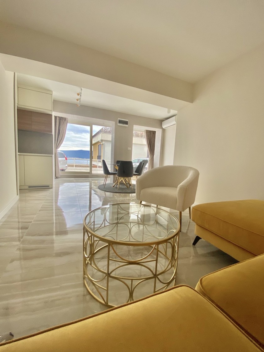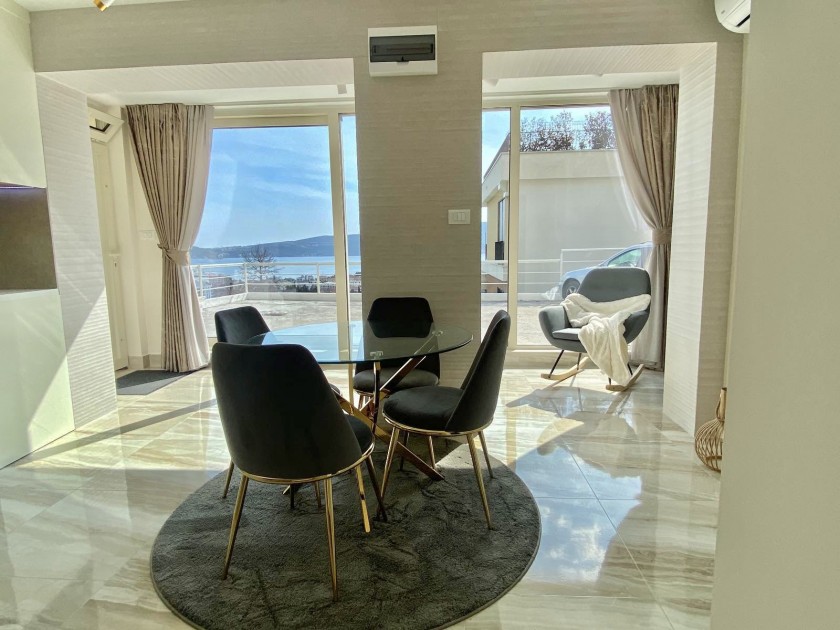 New apartment at Donja Lastva, well known area with breathtaking sea view. Apartment with a total area of 43 m2, consists of one bedroom, living room combined with kitchen, bathroom. There is private parking and a view of the entire Tivat Bay. No one lived there before, brand new furniture.