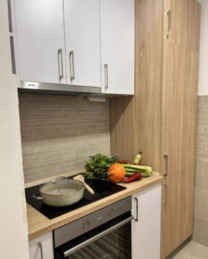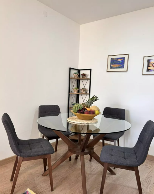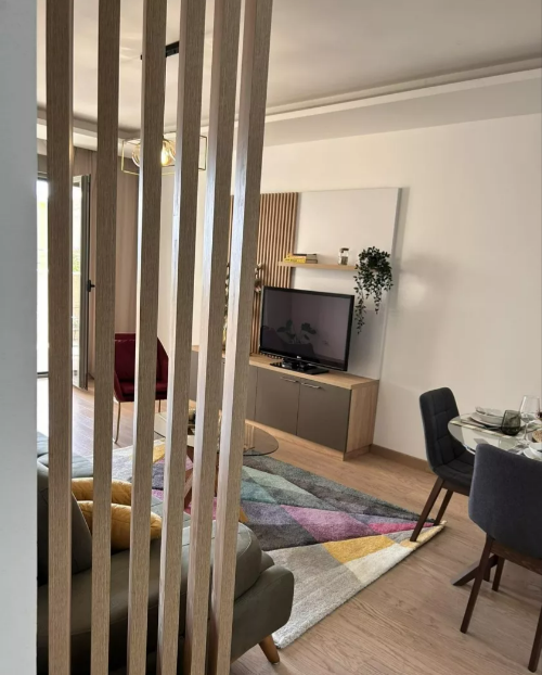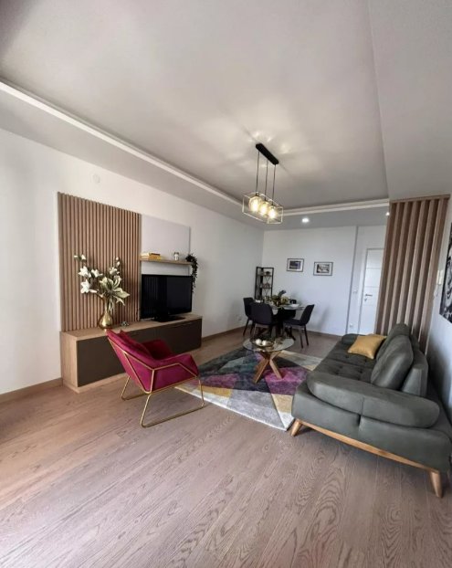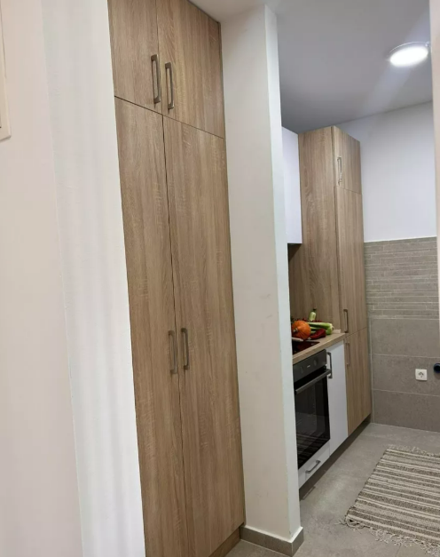 Center of Tivat across the Knightsbridge school. Apartment of 55m2 at I floor, structured as 1+1. There is spacious terrace from which you can access the swimming pool. Apartment is being sold as completely furnished. The apartment is equipped with high-quality products such as natural wood floors, Italian ceramics, suspended ceilings with LED lighting, Villeroy & Bosch toilet, high-quality joinery with thermal breaks. Parking space in the garage is included in the price.