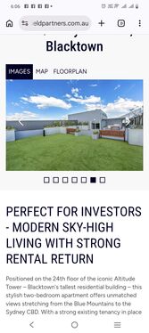 Positioned on the 24th floor of the iconic Altitude Tower – Blacktown's tallest residential building – this stylish two-bedroom apartment offers unmatched views stretching from the Blue Mountains to the Sydney CBD. With a strong existing tenancy in place and solid rental return, this is an ideal opportunity for savvy investors looking for a low-maintenance, high-performing asset.