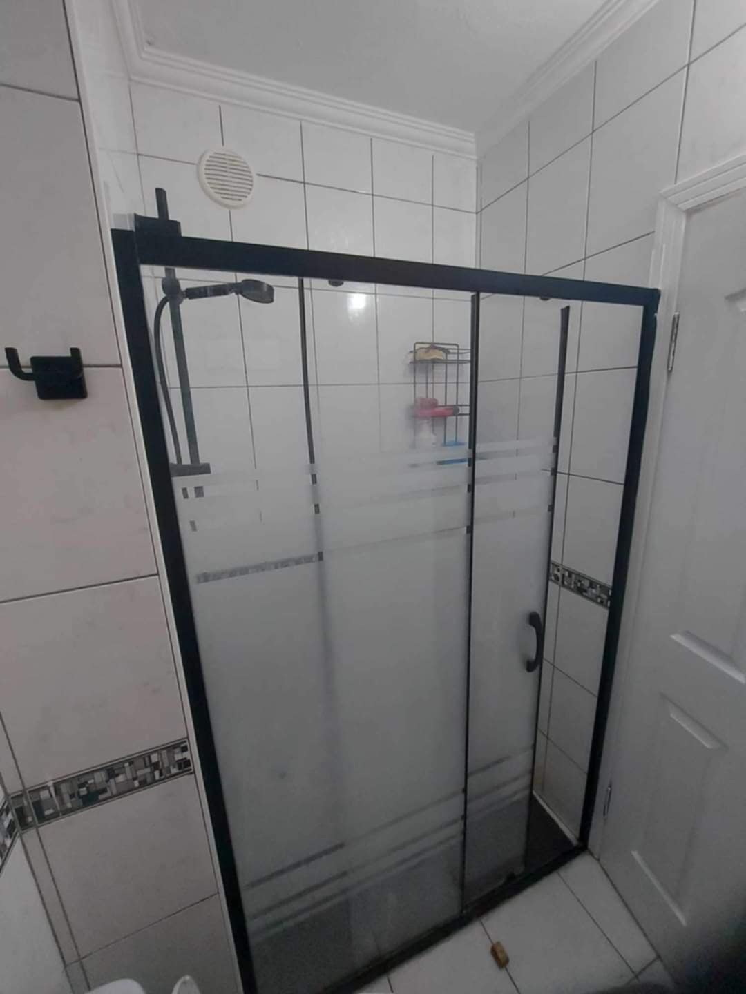 Family bathroom with a new shower and units.