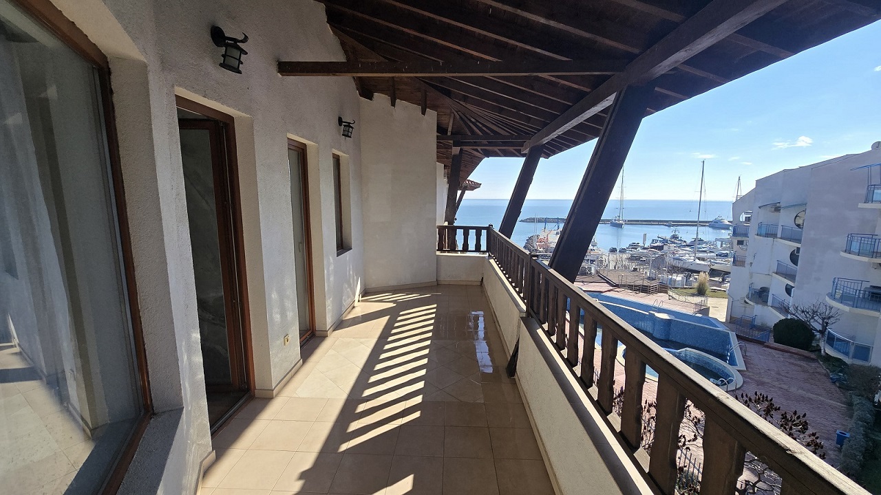 The apartment is 78 sq.m. and it consists of a living room with kitchen and dining area, a big balcony with frontal sea, marina and pool views, 1 bedroom, a bathroom with toilet and sink. The apartment is with unique location and views from both rooms. It is for sale furnished and ready to accommodate its new owners.