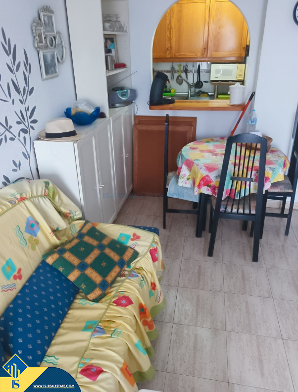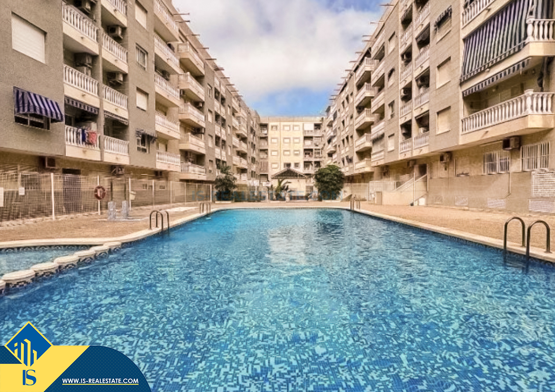 2-room apartment, in the province of Alicante, Spain, in the town of Torrevieja, Playa del Cura district, total surface of 45 m², 350 metres from the sea, 45 kilometres from Alicante city airport. The property has a shared swimming pool. The property is close to shops, restaurants, pharmacies, bus stops, petrol stations, green areas, cafes, centre