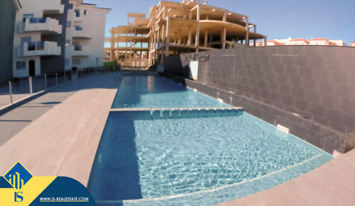 Newly built apartment of 3 rooms, in the province of Alicante, Spain, in Villamartin, with a total surface of 65 m², 4.5 kilometres from the sea, 50 kilometres from Alicante airport. The property has a shared swimming pool. The property has an elevator. The property is close to shops, restaurants, bus stops, petrol stations, green areas, cafés, pharmacies, golf courses