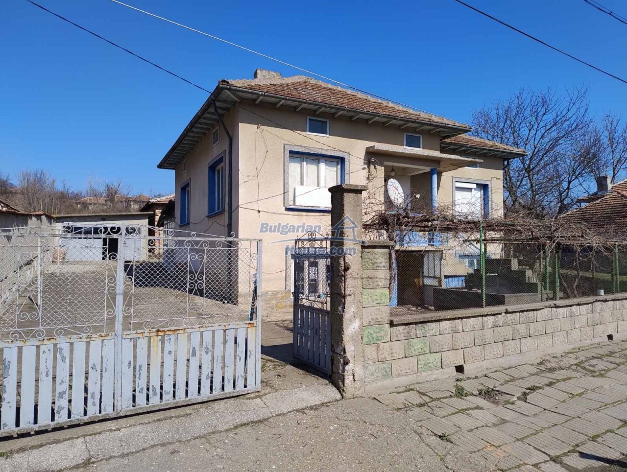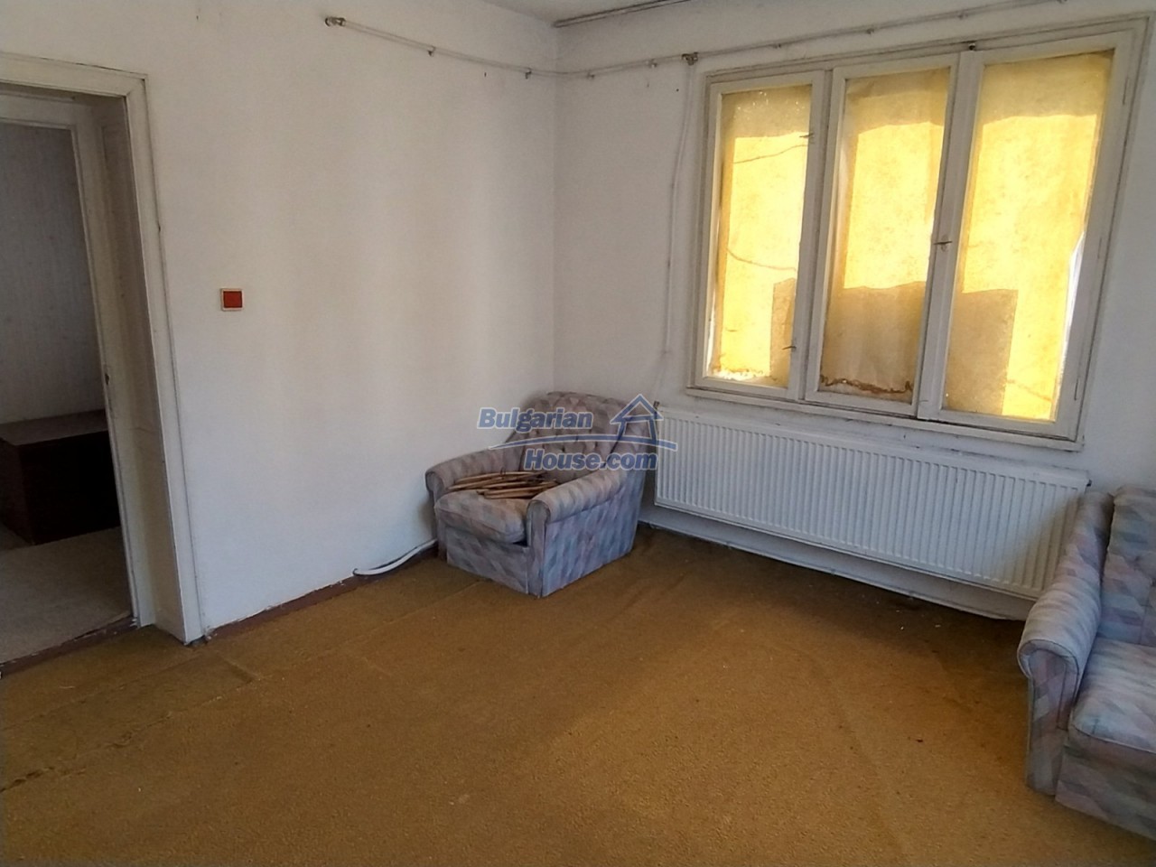 BULGARIAN HOUSE - REAL ESTATE AGENCY is pleased to offer you this rural Bulgarian property for sale in a quiet village 40 km from the regional city Pleven, near plains, fields and two rivers with a nice view as well. The house has two floors and consists of four bedrooms ,a corridor, a kitchen and a bathroom with toilet.Тhere is an external staircase here that leads to the second floor and an additional door behind the house that also leads to the second floor. The walls on the second floor as well as on the first one are plastered and ready for painting. There is also a 40sq.m garage and a brick building behind the house also consisting of two floors.