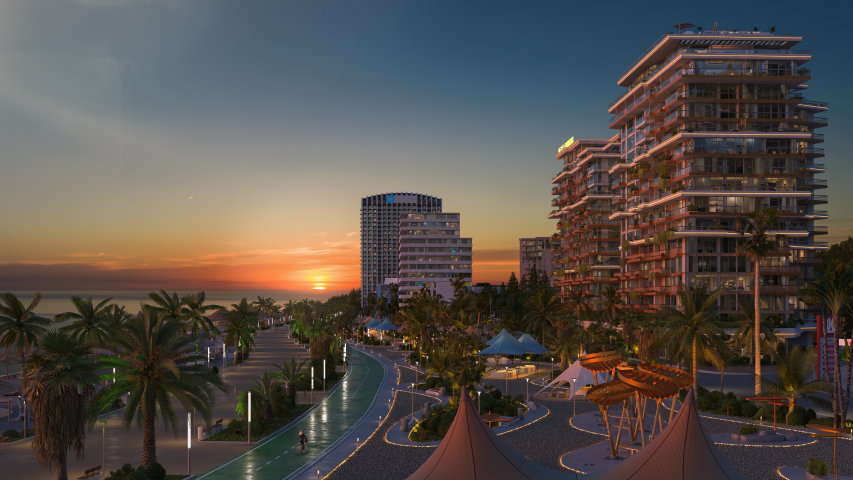 NEXT Gardens redefines the meaning of beachfront property in Georgia, merging the serenity of the mountains with the calm of the Black Sea. Located in Kvariati, one of Adjara’s most scenic and eco-friendly coastal zones, the project offers a refined architectural design enhanced by an elegant olive garden — a symbol of harmony and longevity.