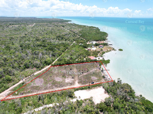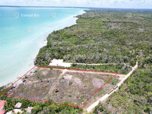 Buy-Belize Real Estate is pleased to offer for sale this beautiful plot of land comprising 2.89 acres with approximately 267 feet of sea frontage. This plot of land has a beautiful panoramic view of the blue turquoise sea water you will enjoy viewing every day. This 2.89 acres plot of land is situated 1.7 miles off Consejo Road and only 2.5 Miles from the town of Corozal. The property has access to electricity and telephone and has a concrete pier. The property has a few palm trees, which decorate it, giving it that beautiful beach look.