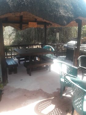 Nestled in the beautiful Marloth Park. This house has 3 bedrooms, 2.5 bathrooms, 2 big garages and much more. The upper deck is huge and walks out on the front and back of the house. The Lapa has a nice braai and outdoor shower. The geysers and stove are gas operated.